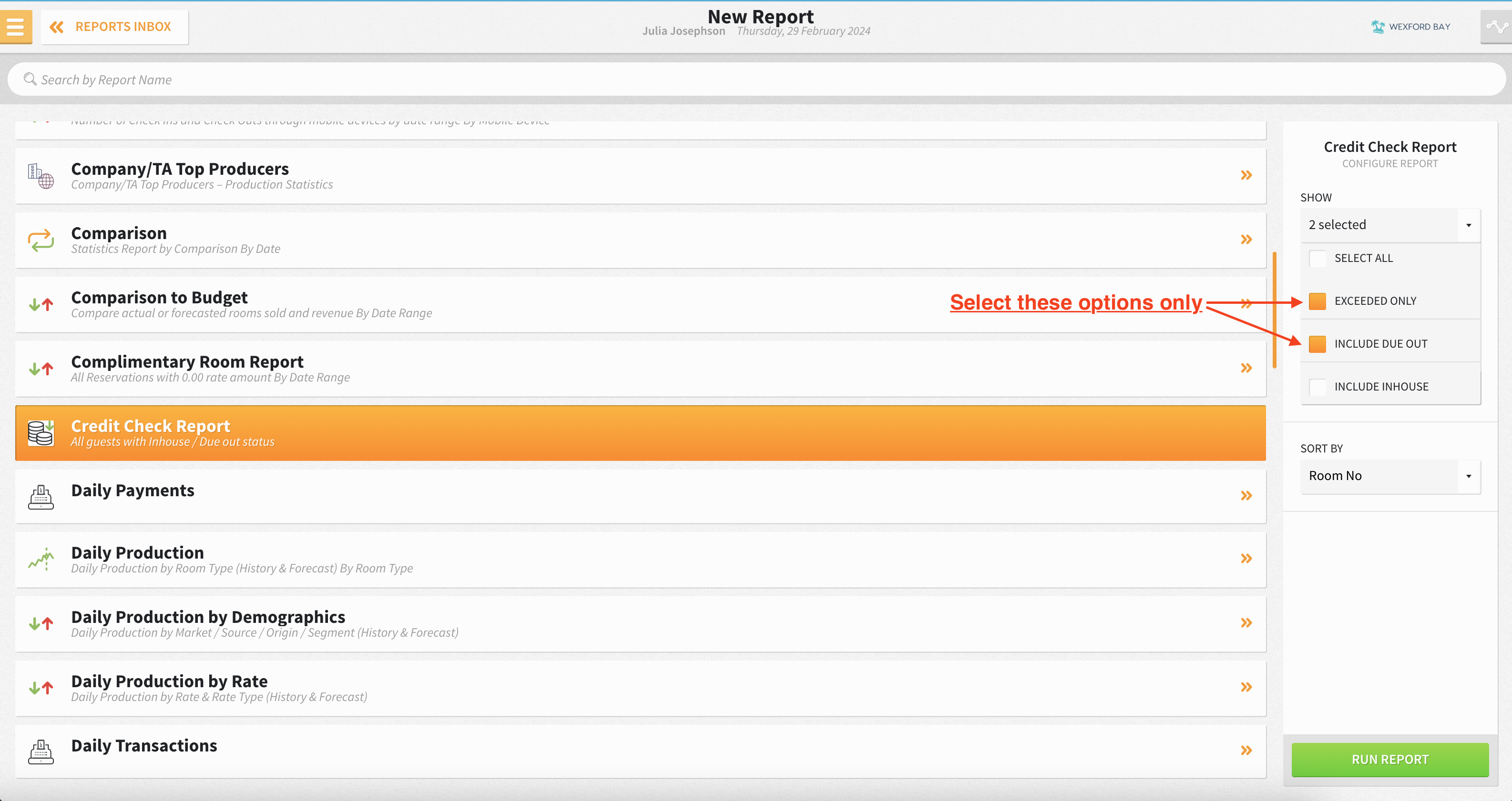 Only those guests who are checking out on a current morning whose credit cards were (or are) declined?