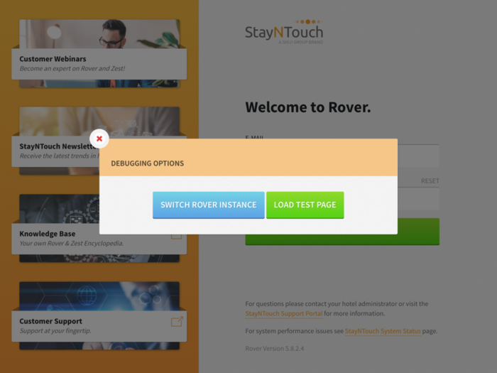 If you select the wrong instance, you can change it by tapping the bottom left corner of the login screen 6 times. Upon doing so, you will be presented with a screen to switch the Rover instance (see below).