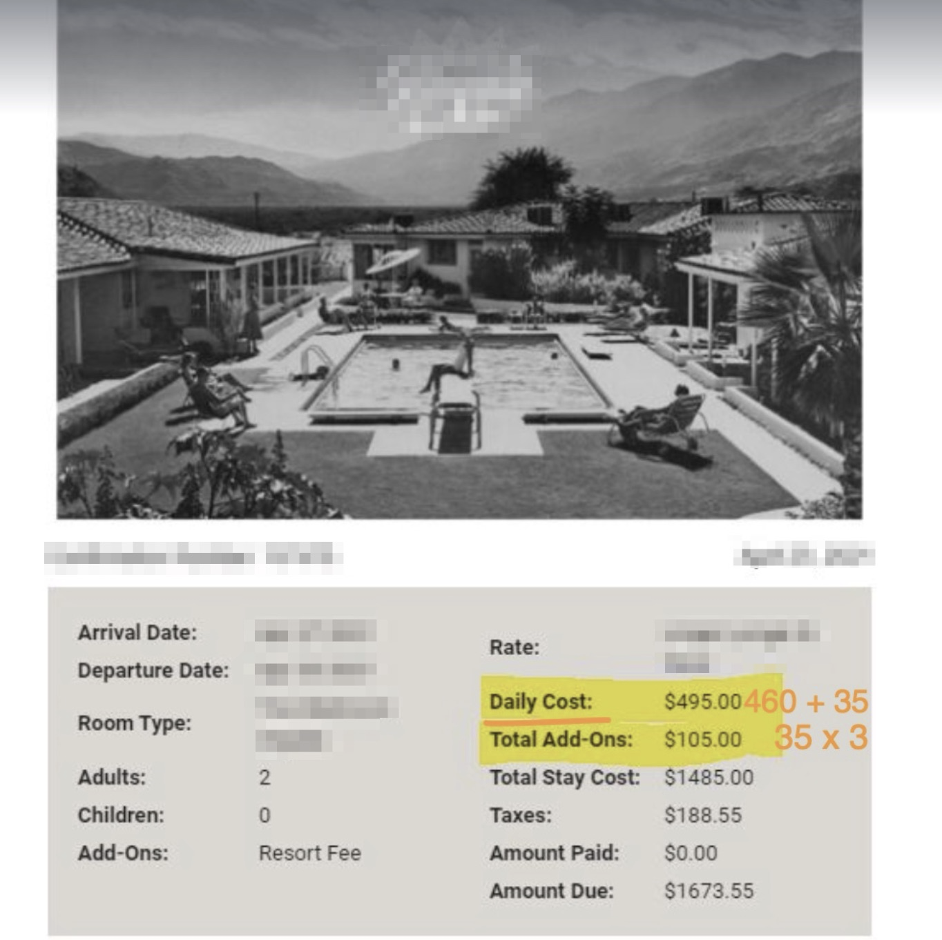 The layout is a little confusing for some guests, as they try to sum up the Daily Cost / Add-ons.