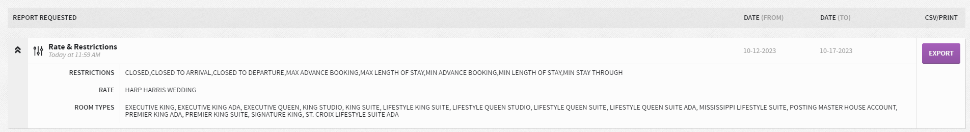 We are looking to be able to run a report for our dynamic rates for PAST and FUTURE reservations. We tried with the rates and restrictions report but we are looking to see if there is another tool that we are not seeing but also why this will not export properly?