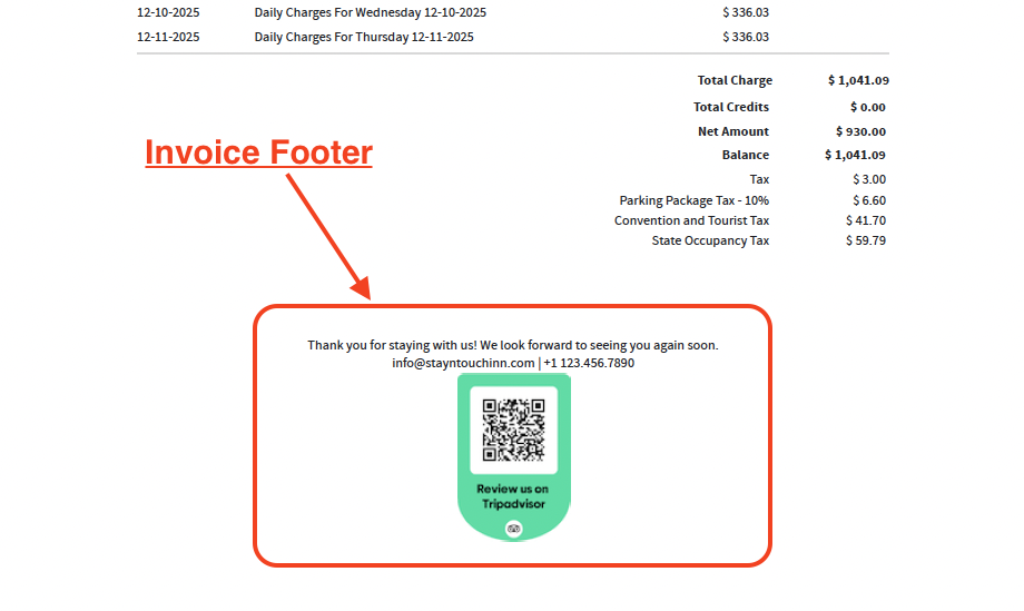Is there a way to incorporate a QR code on the hotel bill/invoice?