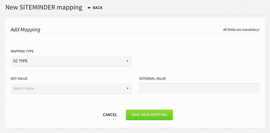Note: In this example, we demonstrate an external mapping in SiteMinder OTA. Mapping in your interface may be slightly different.