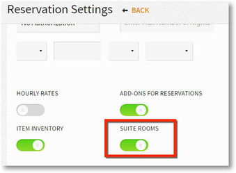- Navigate to Settings > Reservations > Reservation Settings and enable SUITE ROOMS.