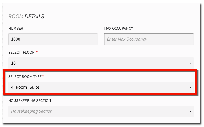 - Below the HOUSEKEEPING SECTION dropdown option, Stayntouch PMS will now display the different room types you configured with this suite.