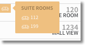 - By hovering the mouse cursor over a suite room icon on the Room Diary (iPad users should tap the suite room icon), Stayntouch PMS will then display all component rooms that make up the suite room. The screenshot below shows that Room 120 is a suite room (noted by the orange suite icon). By hovering over (or tapping) the suite room icon, we can see that Room 112 and Room 199 complete the suite.
