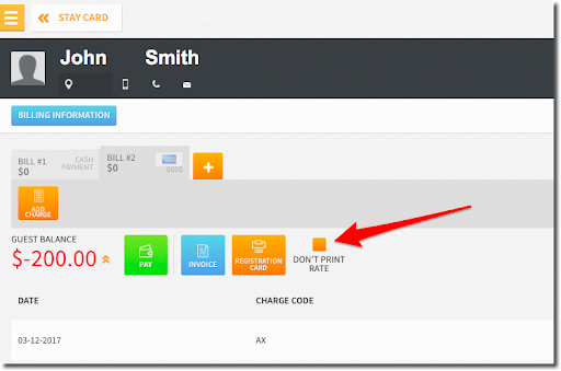 When “Do Not Print Rate” is selected on a guest stay card the rate will not print on the guest registration card.