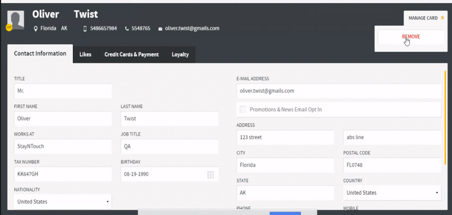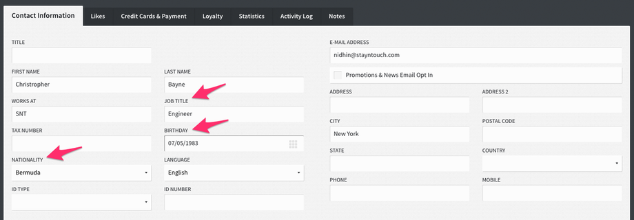 Once saved, data will also be saved to Stayntouch PMS on the guest card