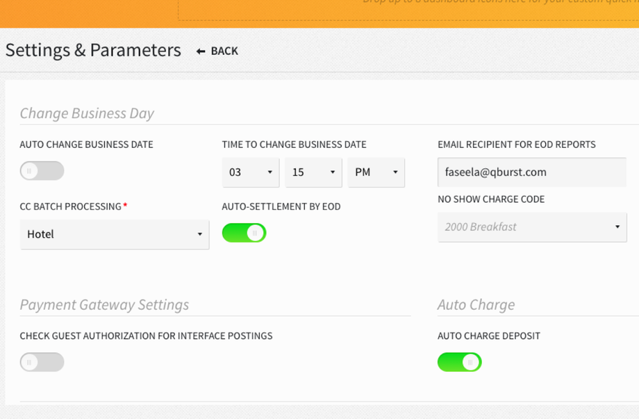 A new option has been added to the auto charge screen labeled “EOD Check-Out,” which lists all reservations that were auto checked out from EOD with a credit card payment.