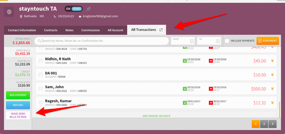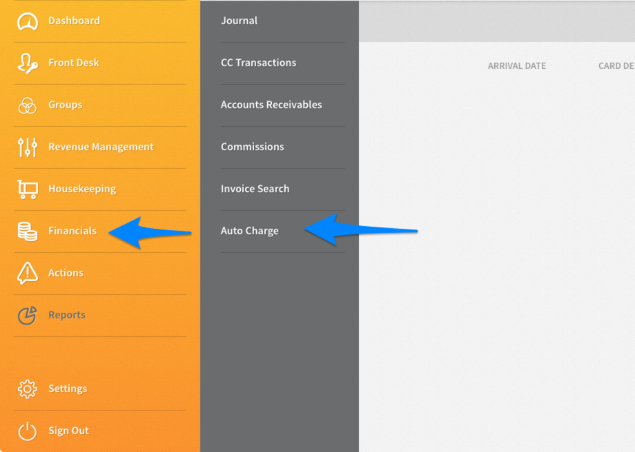 In order to make all reservations that are being auto checked out during EOD more visible, we have created an auto charge screen (under Financials > Auto Charge) that users can review on a daily basis. This update also gives users the ability to navigate to the stay card.
