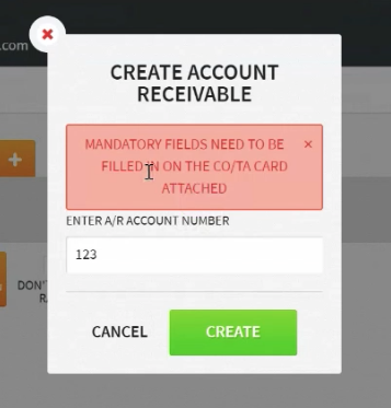 Users will also see a checkbox that reads “Mandatory during A/R number creation”