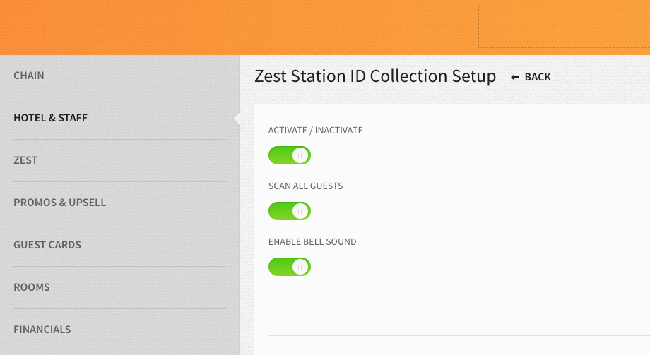 - Settings > Hotel & Staff > ID Collection > Zest Station.
