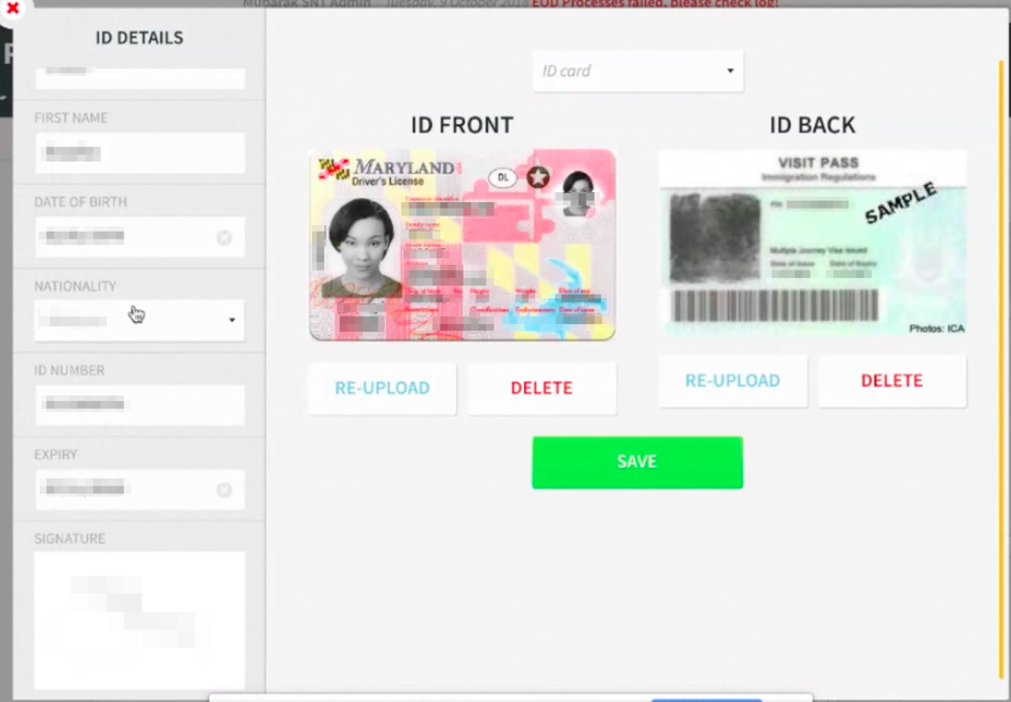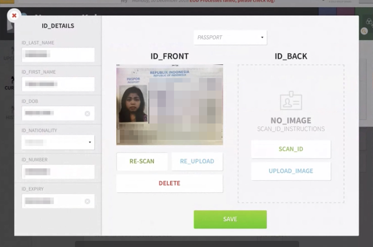Once scanning is completed, the extracted data is displayed with the image of the photo ID