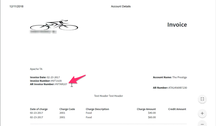 A hotel-specific A/R invoice number has been implemented for these A/R invoices. This label then prints on the invoice.