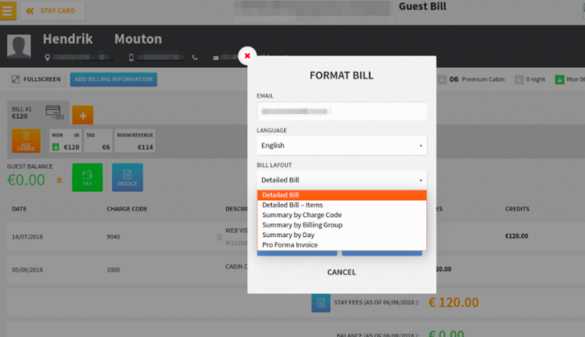 During check-out, when an email is automatically sent to the email address(es) associated with a bill, an activity log will now indicate to which email address(es) the bill is sent.