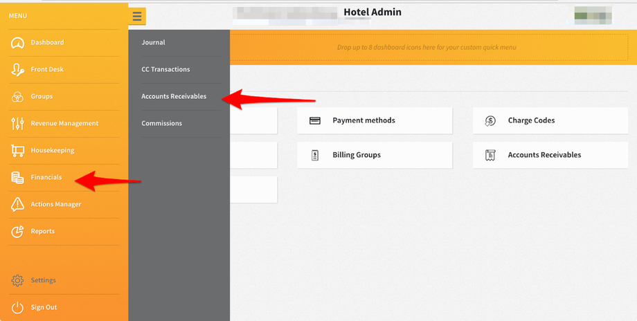 A/R invoices are then generated at the time of payment to the DB from accounts, guest bills, and groups