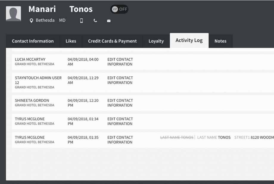 Logs will also be available to show that loyalty program, type, level, and number were updated via Stayntouch Guest Kiosk