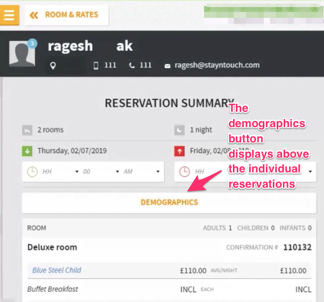 A demographics button will display above the individual reservations