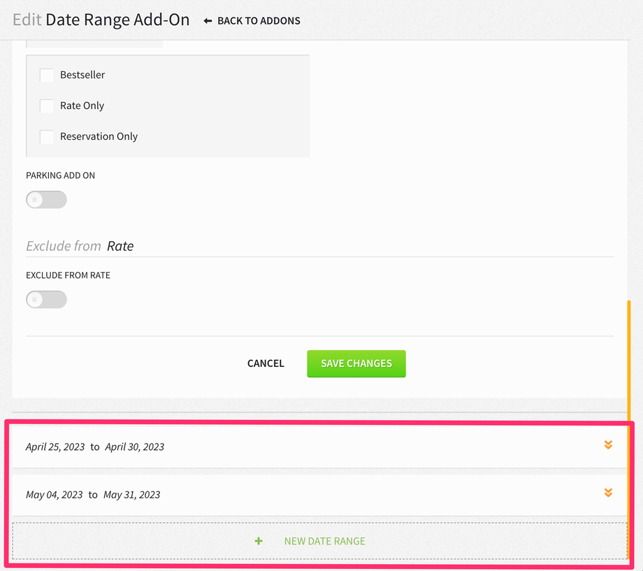 - If the ALLOWANCE toggle is enabled from Settings > Rates > Add-Ons > Select Add-On, the add-on date range configuration will not be available. Please note, this functionality is in progress and will be coming soon.