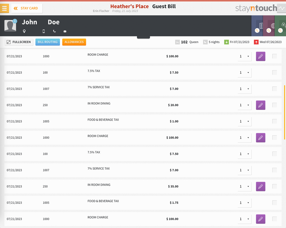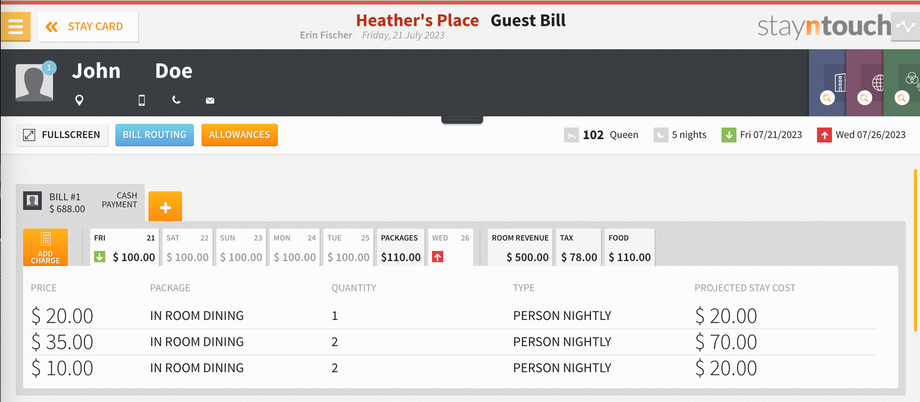 From the Guest Bill, you can see the add-on amounts posted as per the date range rules.