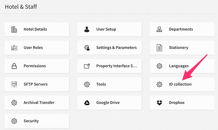To complete ID scanning in Stayntouch PMS and Stayntouch Guest Mobility, navigate to Settings > Hotel & Staff > ID Collection to turn on the function for your property.