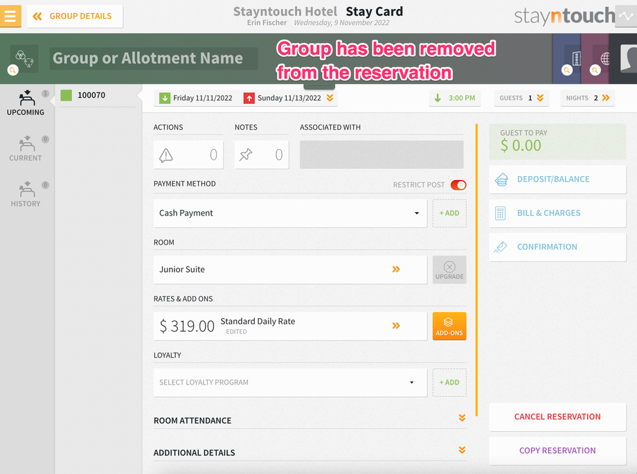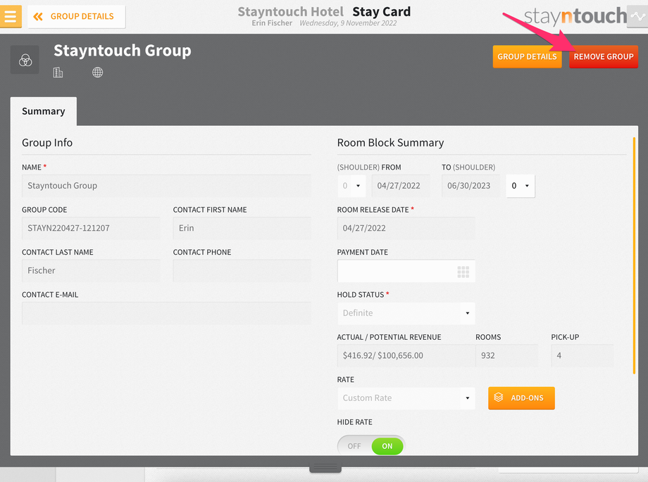 Stayntouch PMS How to Remove a Reservation from a Group/Allotment Block