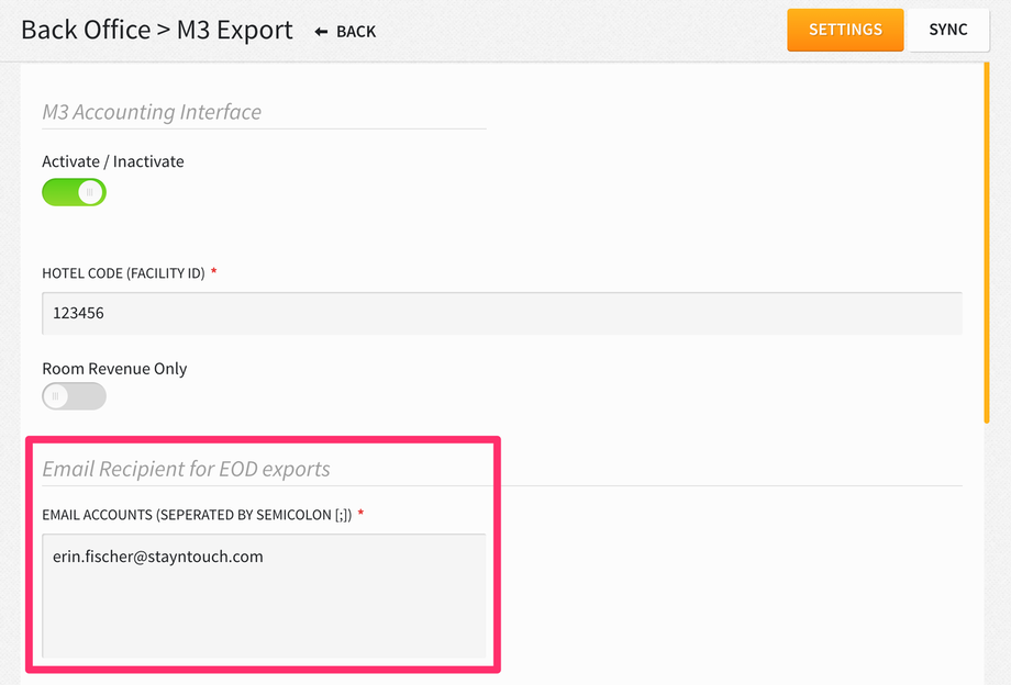 - Email Address:Company or property-specific email address to be sent to M3; this can include other email addresses by including a semicolon (;) between each email address