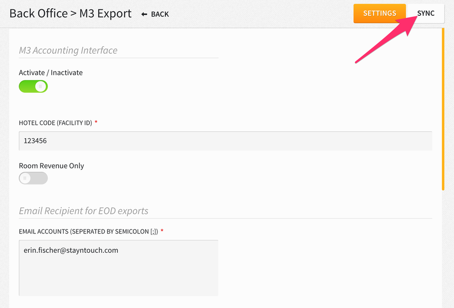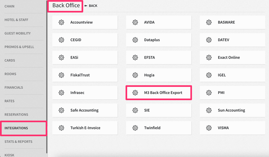 - Go to Settings > Integrations > Back Office > M3 Back Office Export.