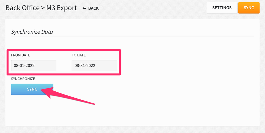 - Select the date range that you require extracts for and click the blue SYNC button.