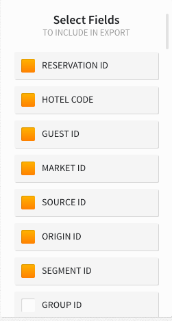 The Guests option contains guest related data fields and will export one row per guest record.