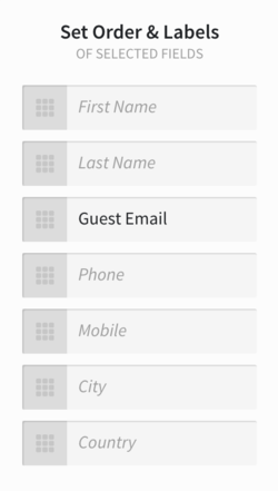 Once you have indicated which fields you would like to include in your export, you can set the order in which you’d like them displayed as well as customize the labels as appropriate for your hotel. To customize a label, simply click into the field and begin typing a new label. Custom labels will appear in black font. Likewise, to rearrange the order of the fields, simply drag and drop the fields as desired.