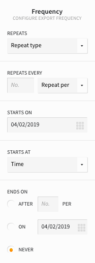 From the Frequency field you can configure the custom export frequency by the following:
