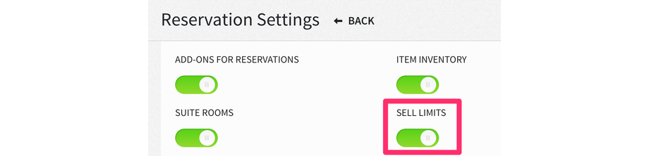To activate Sell Limits for you property, Hotel Admin users can navigate to Settings > Reservations > Reservation Settings and enable the SELL LIMITS toggle.
