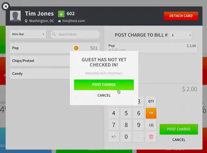 If the guest has not checked in yet, it will display the message below. Simply click POST CHARGE to proceed.