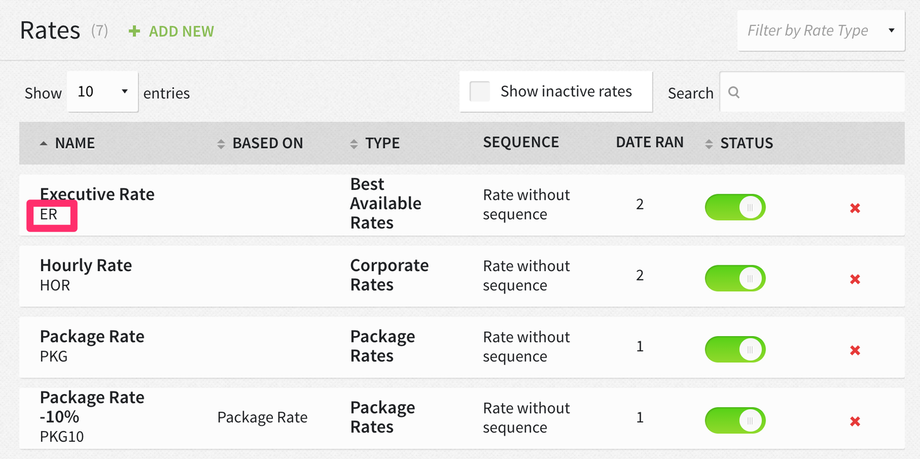 In Settings > Rates > Rates, we now display rate code underneath the rate name.