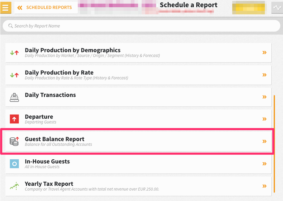 We added the Guest Balance Report to Reports > Schedule a Report/Export. The report is available in CSV format.