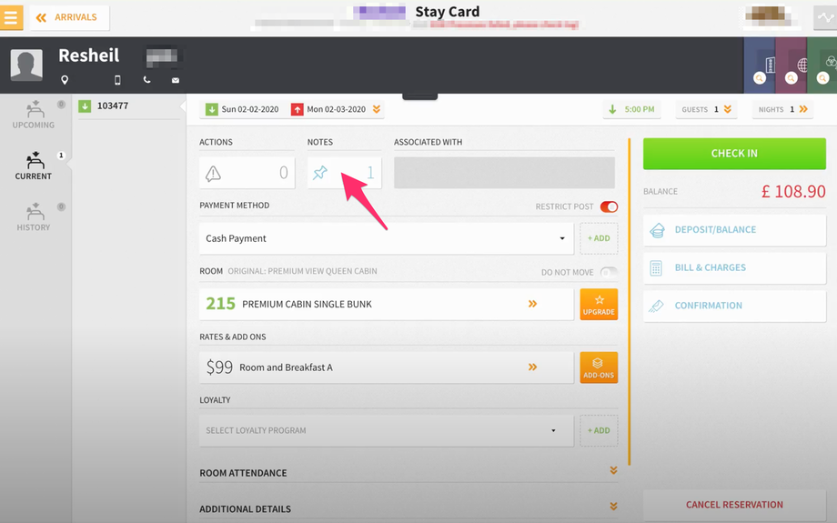 We’ve also added a Files & Notes tab when you select the dropdown bar from the Stay Card. This will allow you to add notes and view guest files.