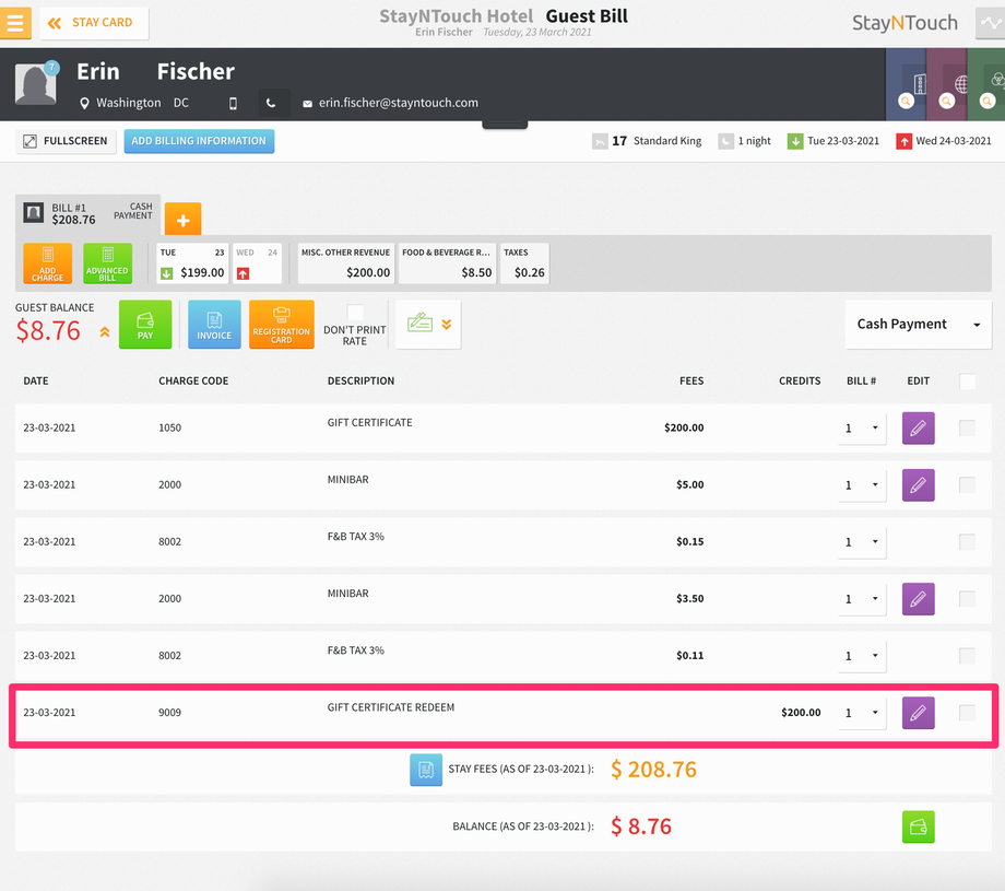 Stayntouch PMS Using Gift Certificates in Stayntouch PMS