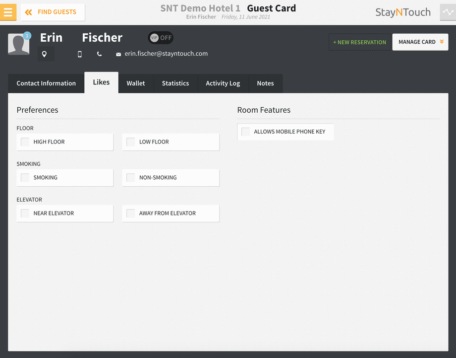 In the Preferences section of the guest card Likes tab, you can now deselect previously selected preferences entirely. Previously, you were able to change a preference by selecting a different preference; however, it wasn’t possible to clear all existing values for that preference type.