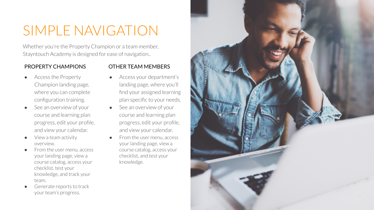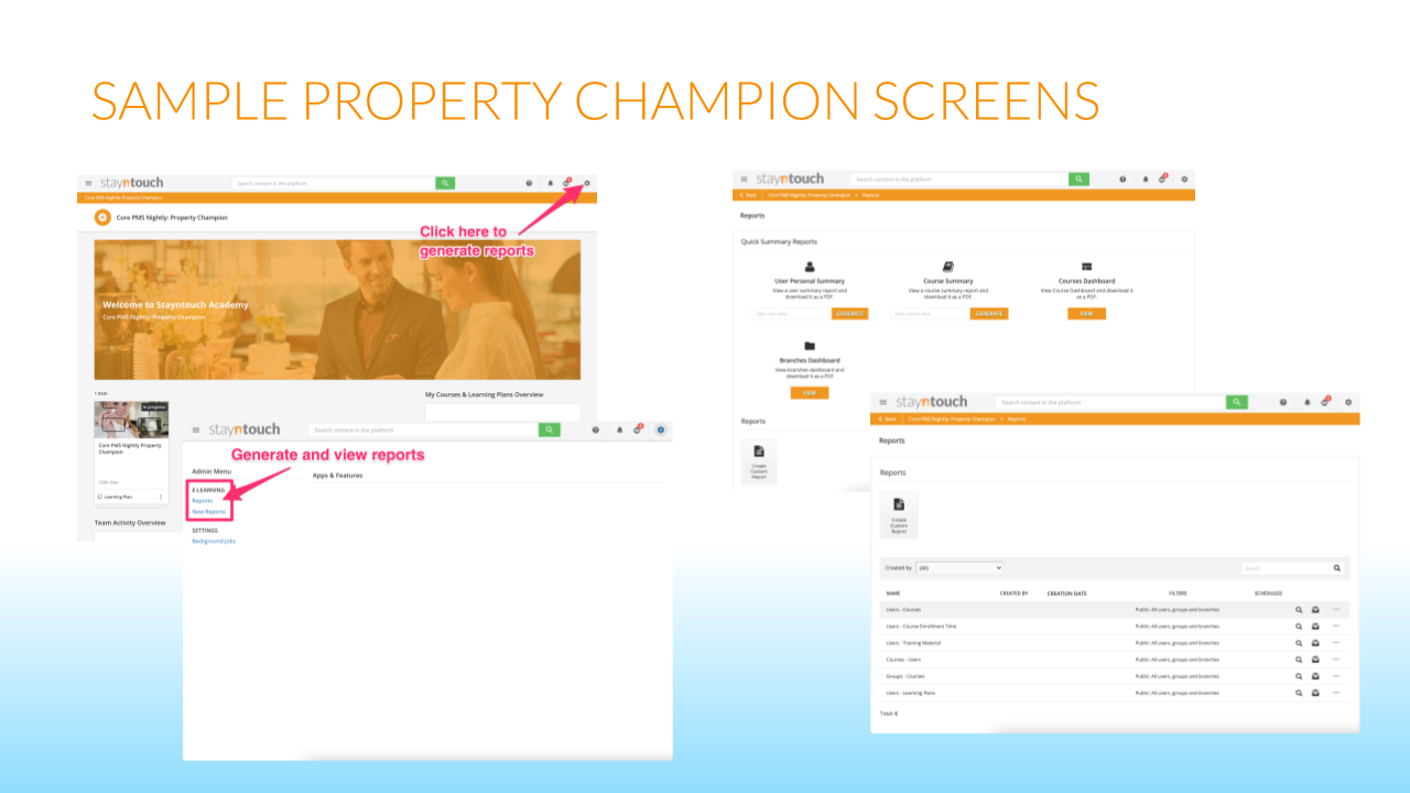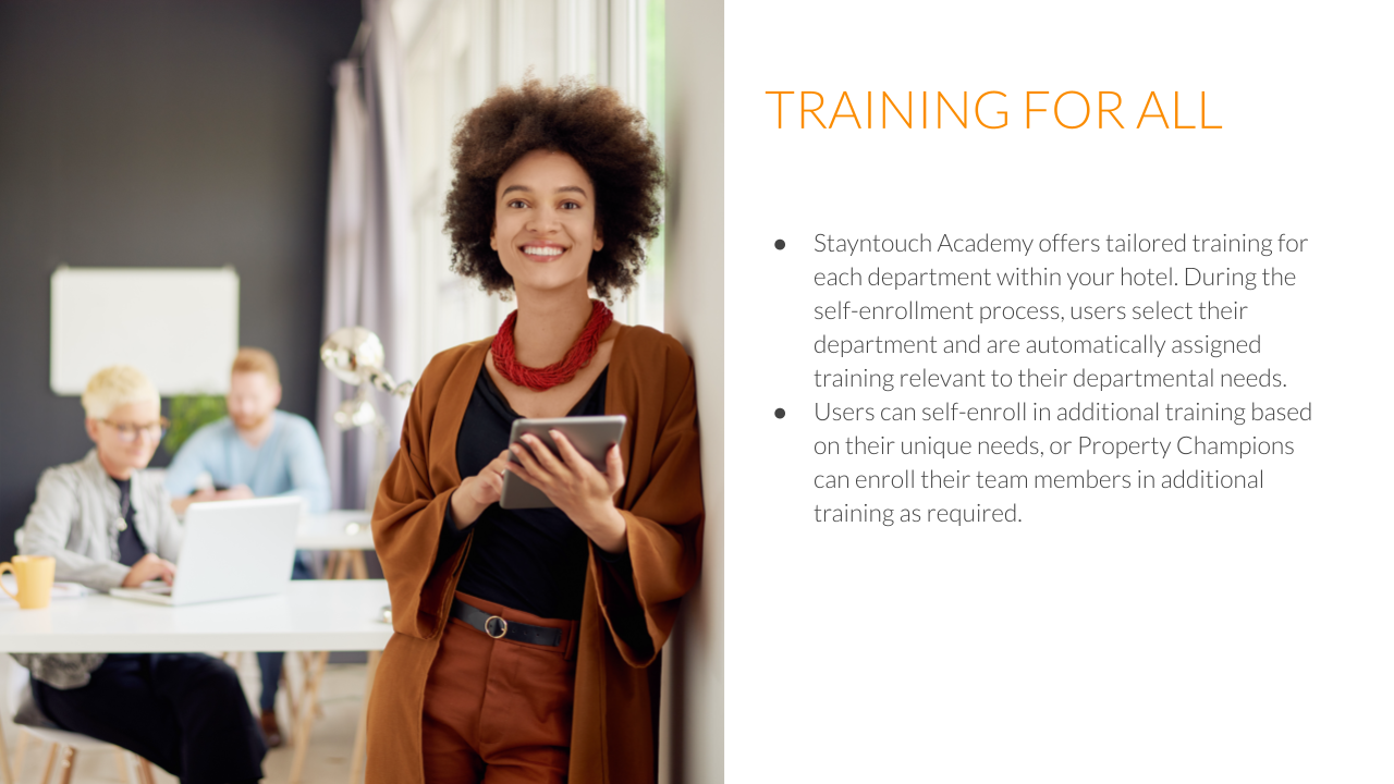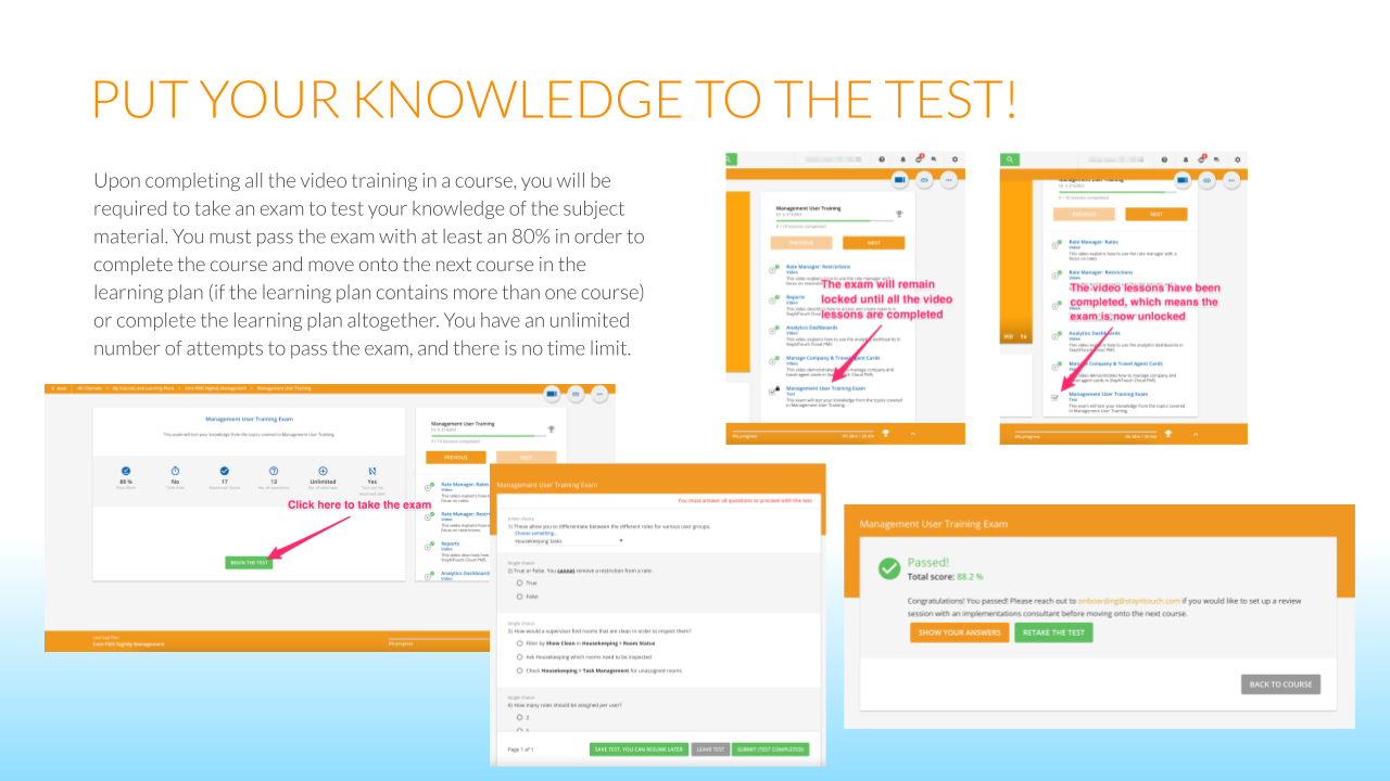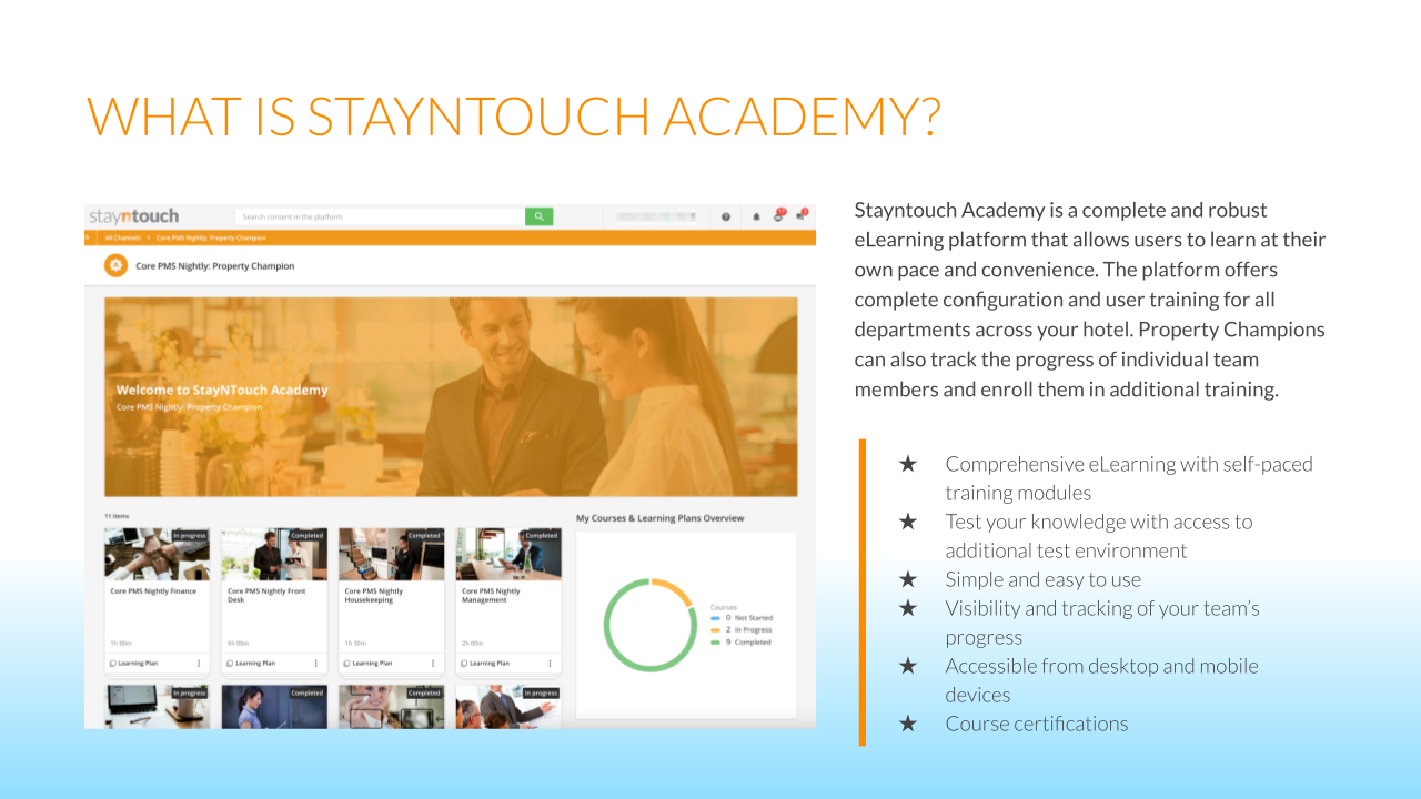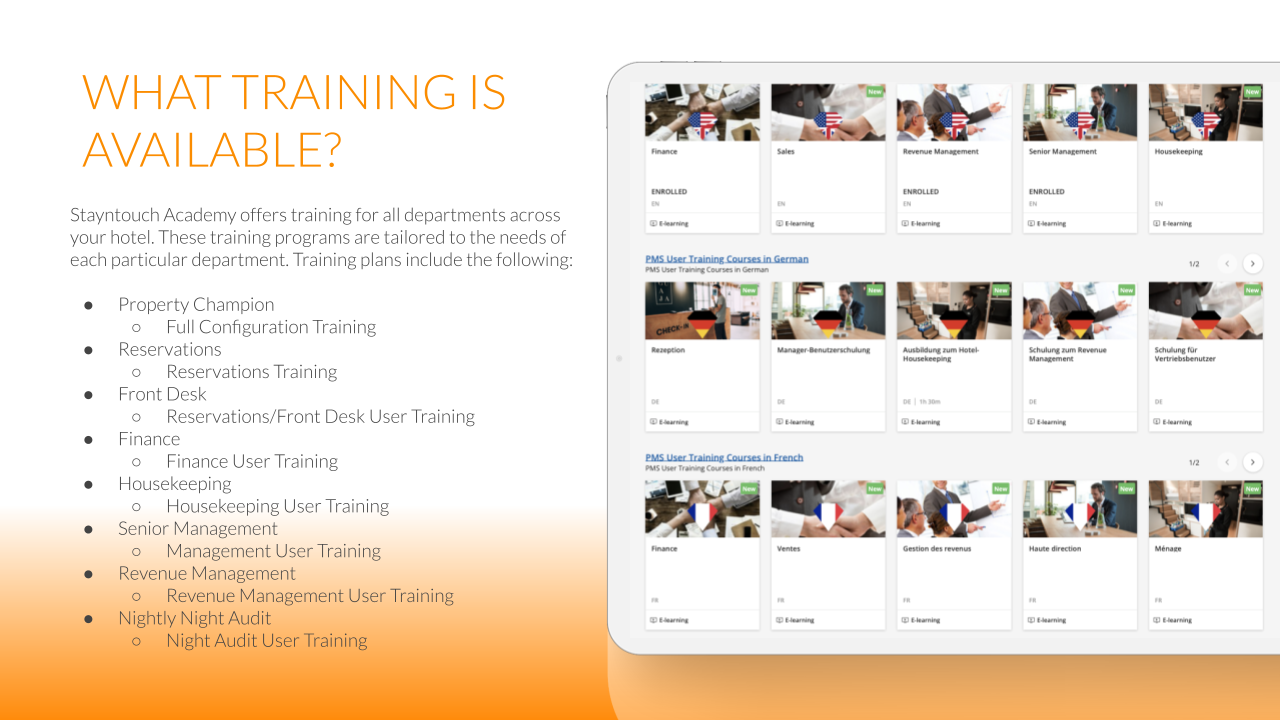 Below please find an introduction to our Learning Management System, Stayntouch Academy.