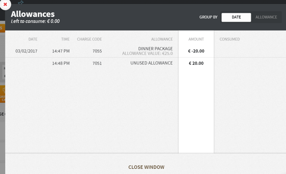 Allowance functionality can be used in many other revenue streams such as spa, laundry, or an overall F&B credit.