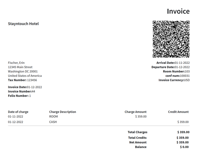 Furthermore, when invoices are generated from Financials > Accounts Receivable, the QR code will now include the A/R Invoice/Folio Number.