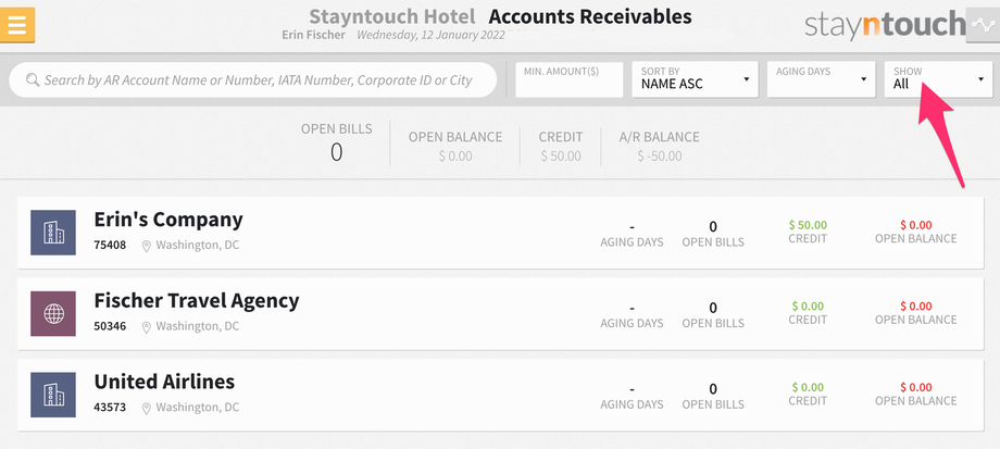 “Show” Filter Added to Accounts Receivable Screen