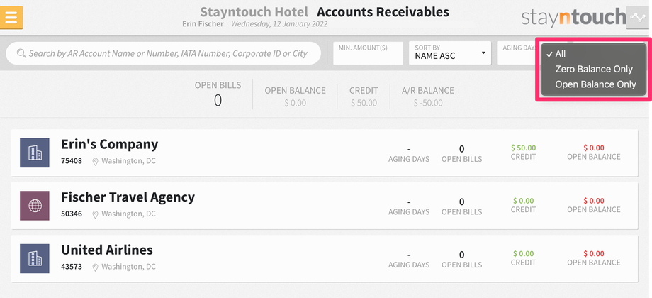 We’ve added a SHOW filter to Financials > Accounts Receivable, which allows users to show All accounts, Zero Balance Only accounts, or Open Balance Only accounts. By default, All will be selected, which includes both open and zero balance accounts. Filtering all open accounts or all zero balance accounts will return only those accounts that match.