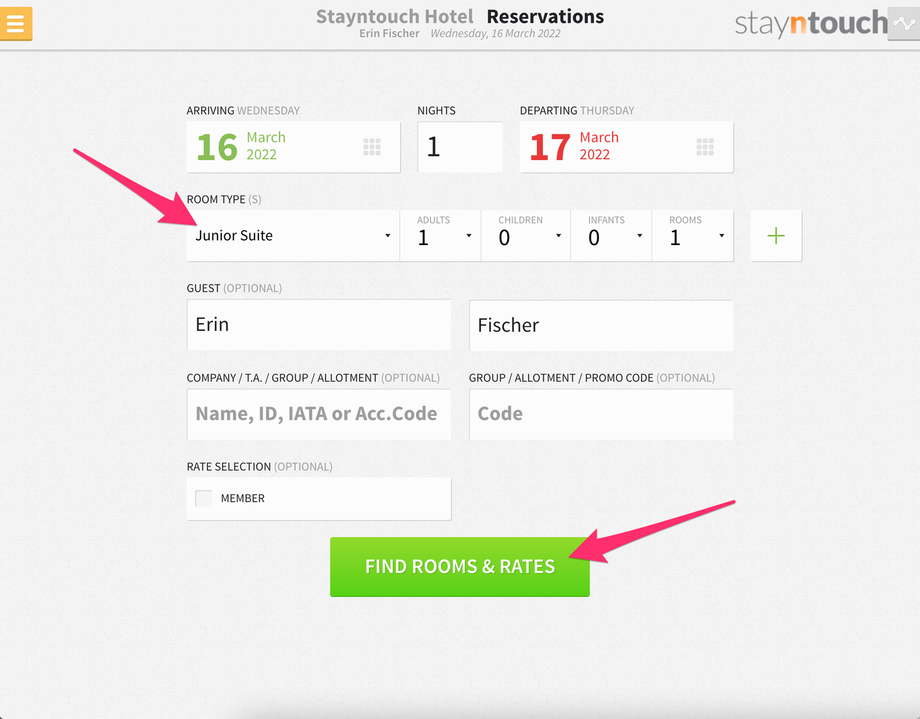 But now, if you navigate to Revenue Management > Sell Limits, you can select the date you want to take a look at (in this example, March 16), and you’ll see that 0 rooms are available for the Junior Suite on March 16. However, if you click into the room type for March 16, set a value of 3, and click SET LIMIT, this will allow you to overbook your room type by 3 rooms. Now, if you go to create a reservation for a Junior Suite room type, you’ll see that you have 3 rooms available.
