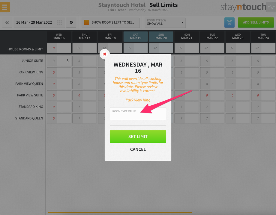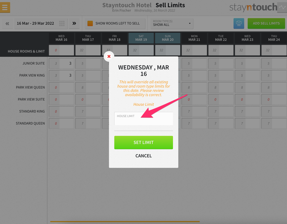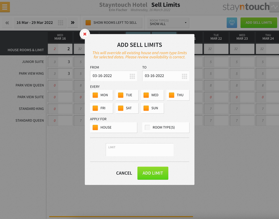 Stayntouch PMS Sell Limits