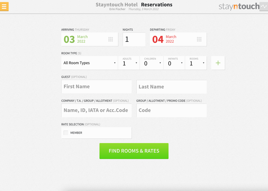 For this example, however, we will create a reservation using just the stay dates and guest first and last name.