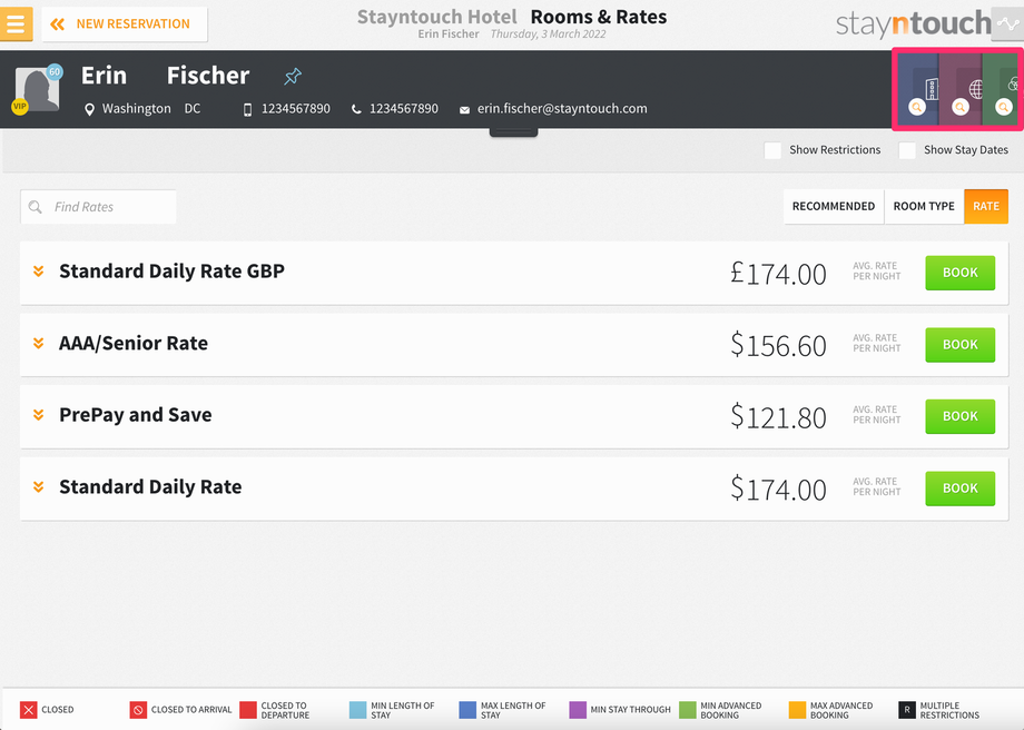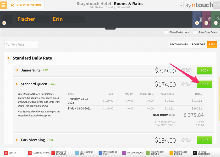 Once you have identified the right rate for the guest, click the green BOOK button.