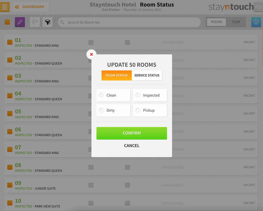 Stayntouch PMS Housekeeping Room Status