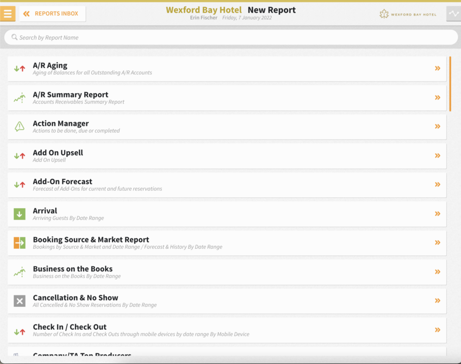 The Reports Inbox is our method of presenting reports to the user when generating new reports. Instead of generating reports on-screen as the user requests them, reports are sent to a Reports Inbox, allowing the user to work on other tasks while the report is generating in the background.