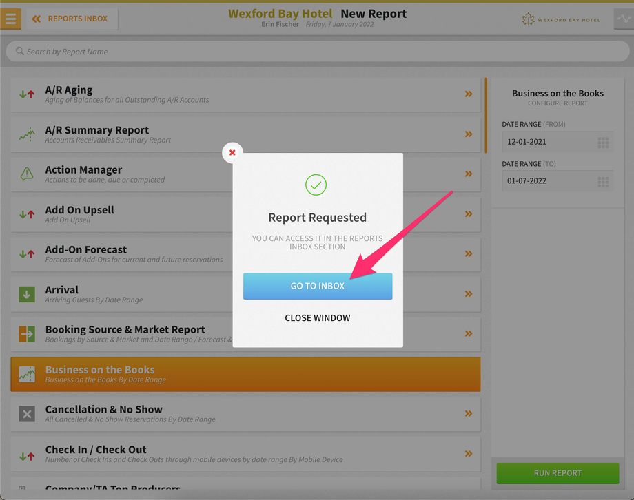 - All generated reports in the Reports Inbox will remain there for three days before disappearing, meaning you can go back and retrieve that report anytime within those three days.